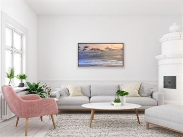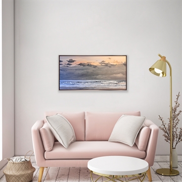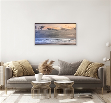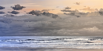 Betagende maleri fra Sønderstrand, sådan som det ser ud i oktober på en skyet morgen før solen står op. Maleriet her er malet i kun 3 farver.