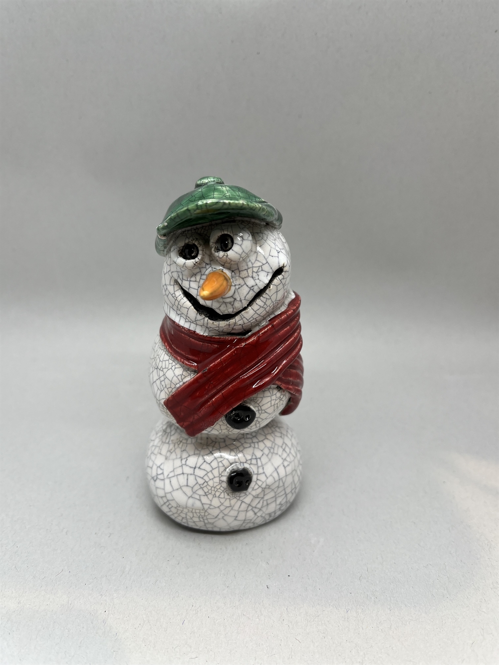 Skøn keramik snemand - håndlavet af Mariann Byrdal