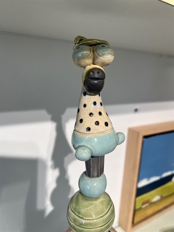 Flot keramik søjle med fantasi figur. Af Christina Weldingh