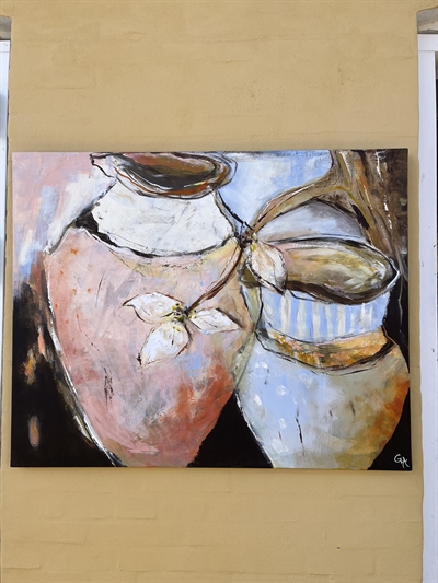 Maleri 80 x 100 cm, Krukker m/ magnolie gren