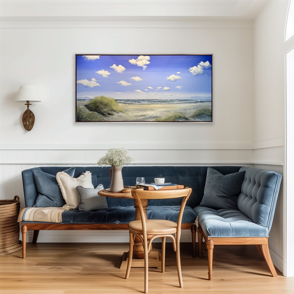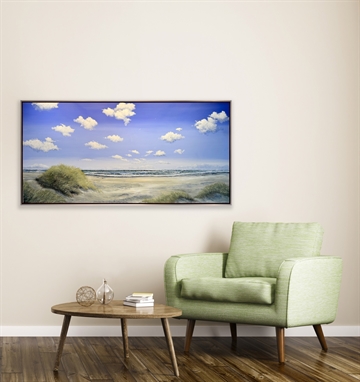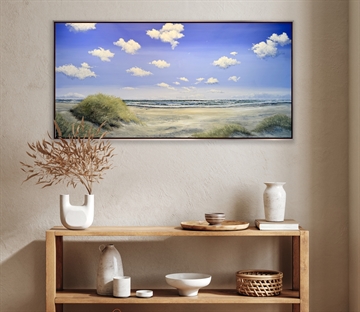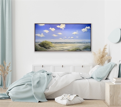 Med dette skønne maleri fra Skagen Sønderstrand, følger lyset, havets bevægelse og naturens åbenhed med ind i rummet. Gitte Tofts malerier tilfører hjemmet en sanselig stemning, der kan mærkes – ikke bare ses.